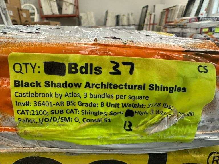 Black Shadow Architectural Shingles. Castlebrook by Atlas, 3 Bundles per Square, Grade: B. Weight: 3128. Sold by: Bundle. Sold as: Price x Quantity.