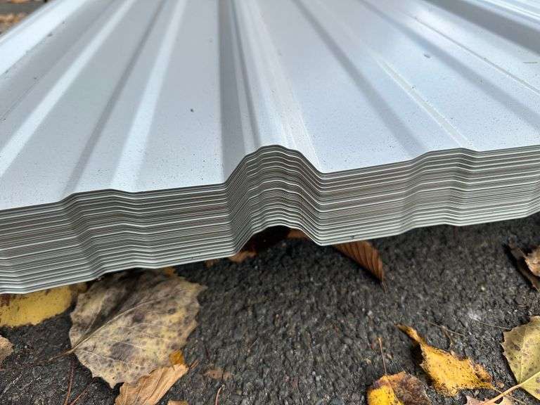 White Corrugated Metal Panel 3'x8'. 26 Gauge, 51 Pieces, Grade: B. Metal can be labeled as "B Grade" for many reasons. Some may include possible paint imperfections such as; off colors, light or heavy coating, dirt in paint, paint splash or blisters. They may contain steel imperfections such as; creases, wrinkles, wavy edges, dents, or general handling damage. When bidding on Grade B metal panels please don't assume that any two lots are the same. If you want to buy more than one (1) lot and need the same color please call us at 607-865-6951 to have us inspect the lots before you purchase. Weight: 1142. Sold by: Linear Foot. Sold as: Price x Quantity.