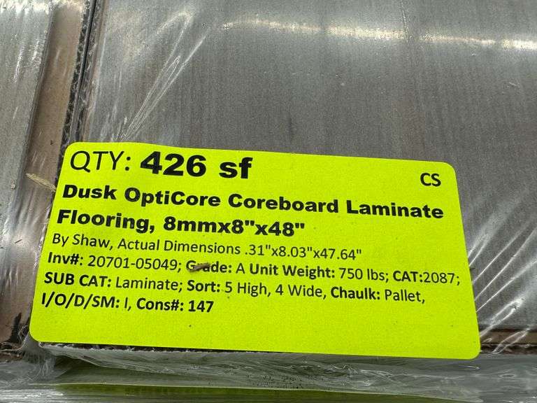 Dusk OptiCore Coreboard Laminate Flooring, 8mmx8"x48". Some Edges May Be Bent, Approximately 426 Square Feet, Grade: A Weight: 750. Sold by: Square Foot. Sold as: Price x Quantity.
