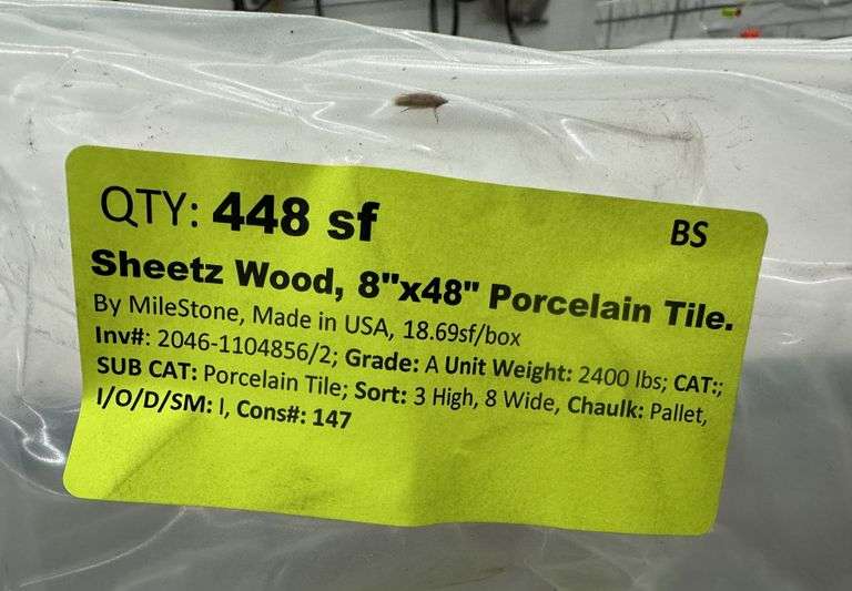 Sheetz Wood 8"x48" Porcelain Tile. By MileStone, Made In USA, 18.69 Square Foot per Box, Grade: A Weight: 2400. Sold by: Square Foot. Sold as: Price x Quantity.