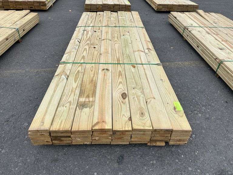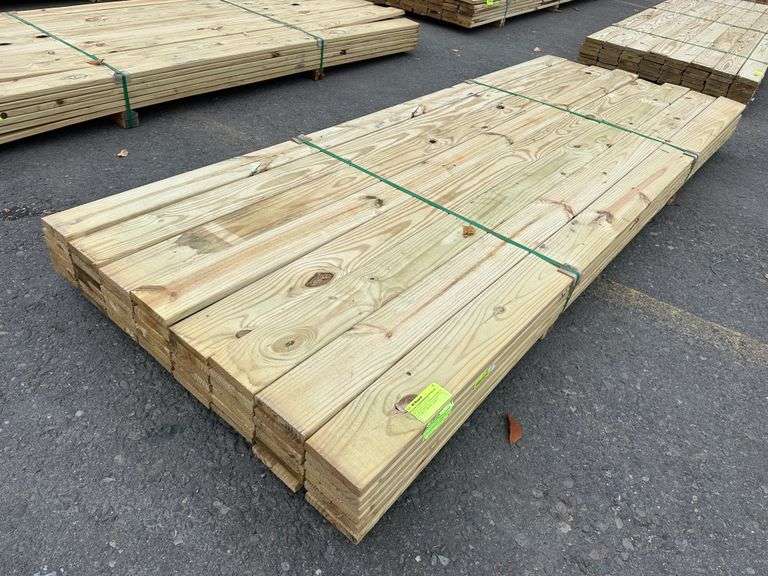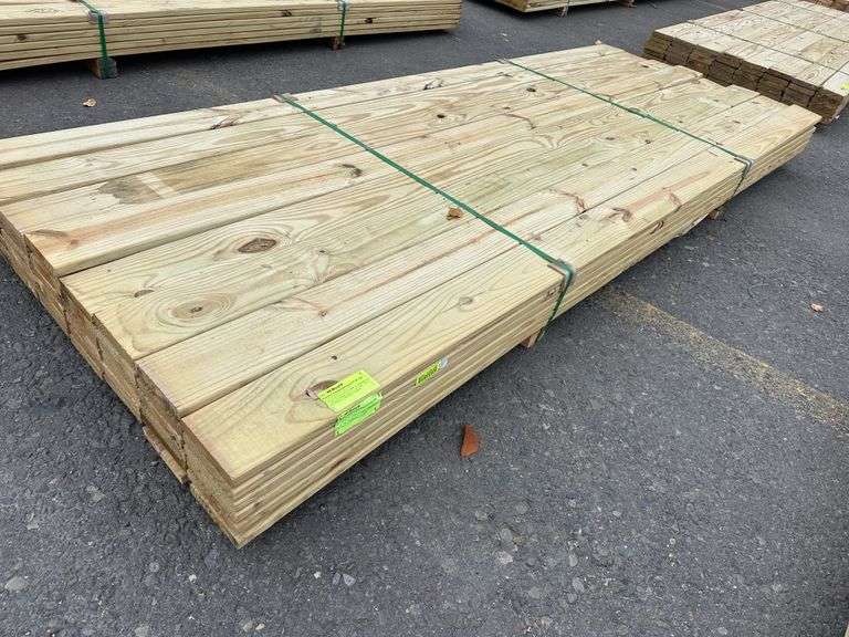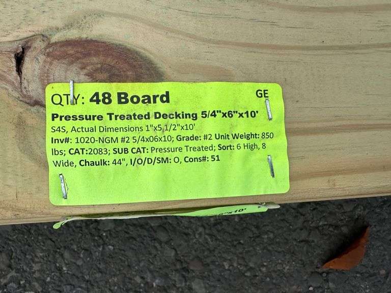 Pressure Treated Decking 5/4"x6"x10'. S4S, Actual Dimensions: 1"x5 1/2"x10', Grade: #2. *Condition Note: Fork Damage, Please See Photos.* Weight: 850. Sold by: Board. Sold as: Price x Quantity.