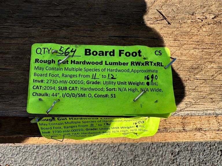 Rough Cut Hardwood Lumber RWxRTxRL (Longest Board 12'). May Contain Multiple Species OF Hardwood, Approximate Board Foot, Ranges From 11' to 12', Grade: Utility Weight: 1690. Sold by: Board Foot. Sold as: Price x Quantity.