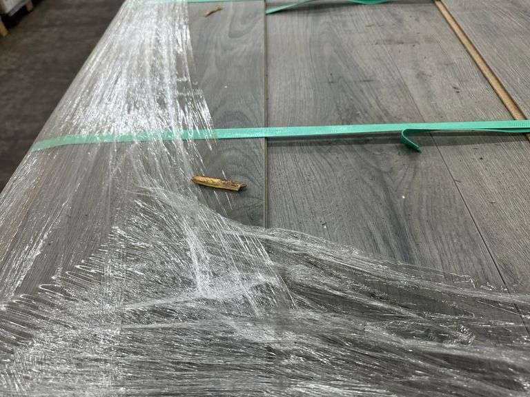 Grey 8mmx8"x48" Mixed Laminate Flooring. Unboxed, Approximately: 1300-1500 Square Foot, Grade: B *Condition Note: Some Edges may Be Damaged, Please See Photos* Weight: x. Sold by: Pallet. Sold as: Price x Quantity.