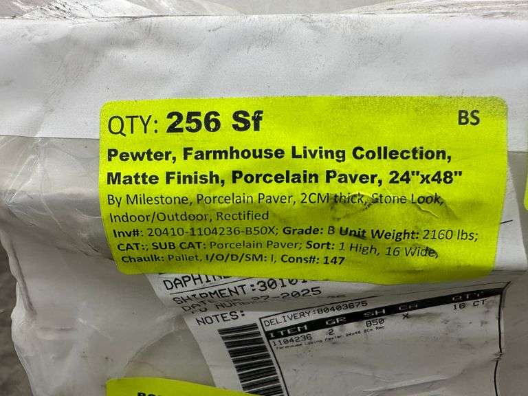 Pewter Farmhouse Living Collection Matte Finish Porcelain Paver 24"x48". By Milestone, Porcelain Paver, 2CM Thick, Stone Look, Indoor/Outdoor, Rectified, Grade B Weight: 2160. Sold by: Square Foot. Sold as: Price x Quantity.