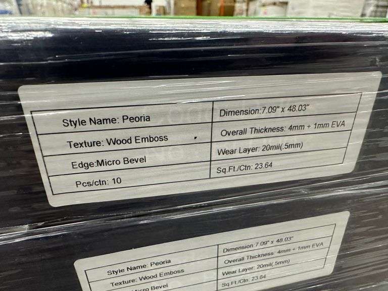 Peoria Brown SPC Flooring 5MMx7.09"x48.03". Wood Emboss Texture, 1mm EVA Underlayment, 23.64 Square Foot Per Carton, Grade: B Weight: 690. Sold by: Square Foot. Sold as: Price x Quantity.