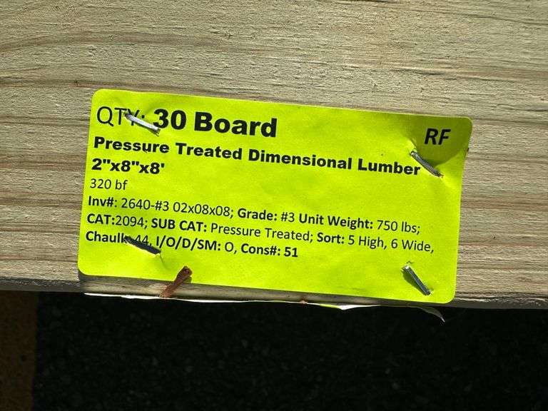 Pressure Treated Dimensional Lumber 2"x8"x8'. 320 Board Foot, Grade: #3 Weight: 750. Sold by: Board. Sold as: Price x Quantity.