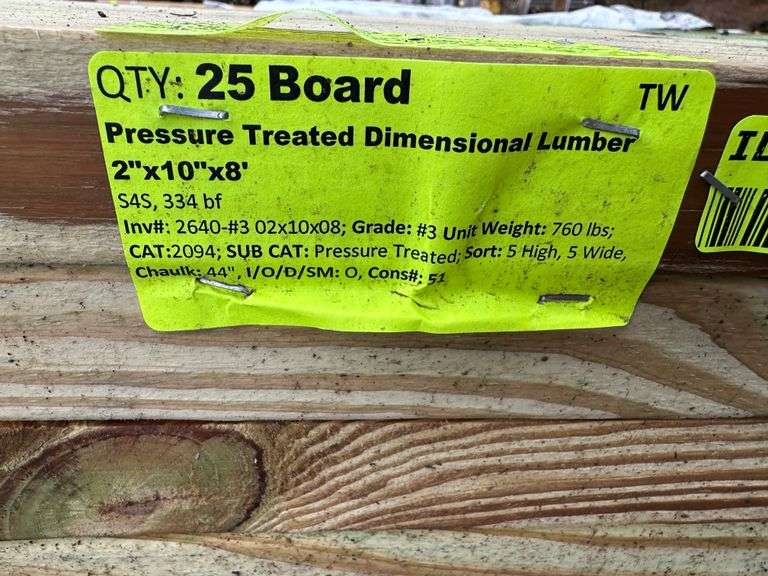 Pressure Treated Dimensional Lumber 2"x10"x8'. S4S, 334 Board Foot Grade: #3 Weight: 760. Sold by: Board. Sold as: Price x Quantity.