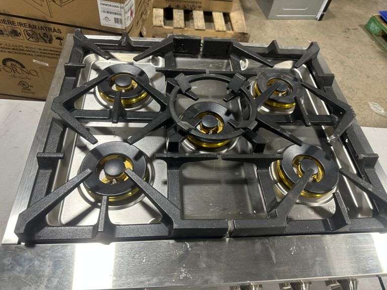 FORNO Spezia 30" Gas Rangetop with 5 Sealed Burners. 29.92"W x 27.56"D x 8.27"H. Looks used and dirty. Weight: . Sold by: . Sold as: Price x Quantity.