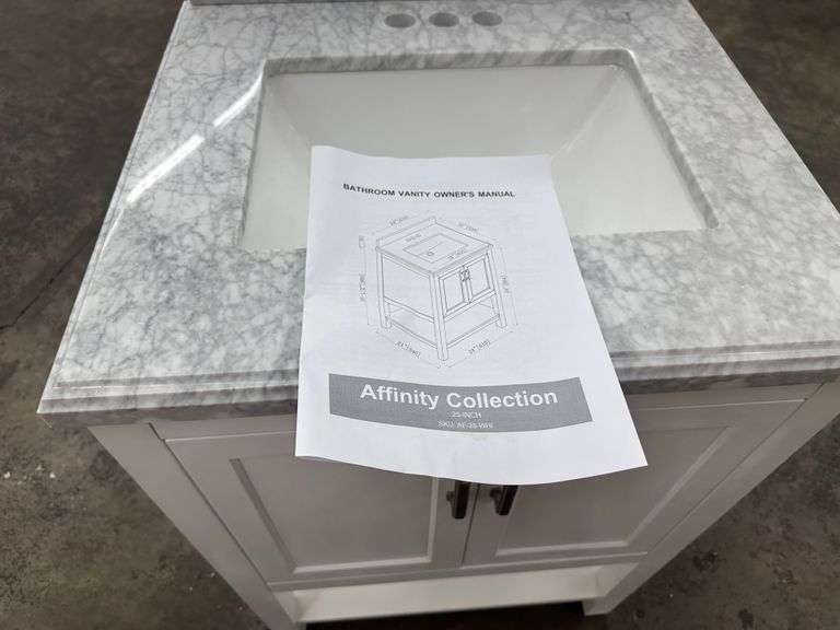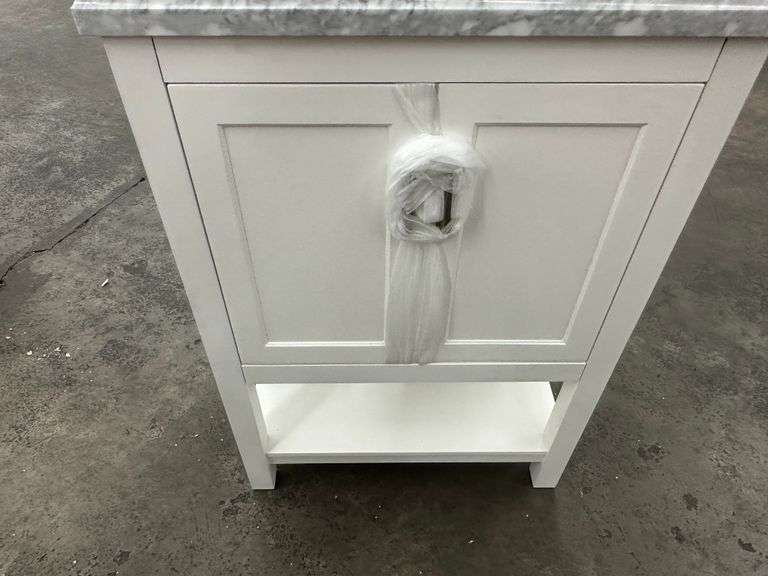 Everett White Vanity 24". Home Decorators Collection, White With Carrara Marble Top, Single Sink 25"x22"x36", Grade: 1st Weight: 128. Sold by: Piece. Sold as: Price x Quantity.