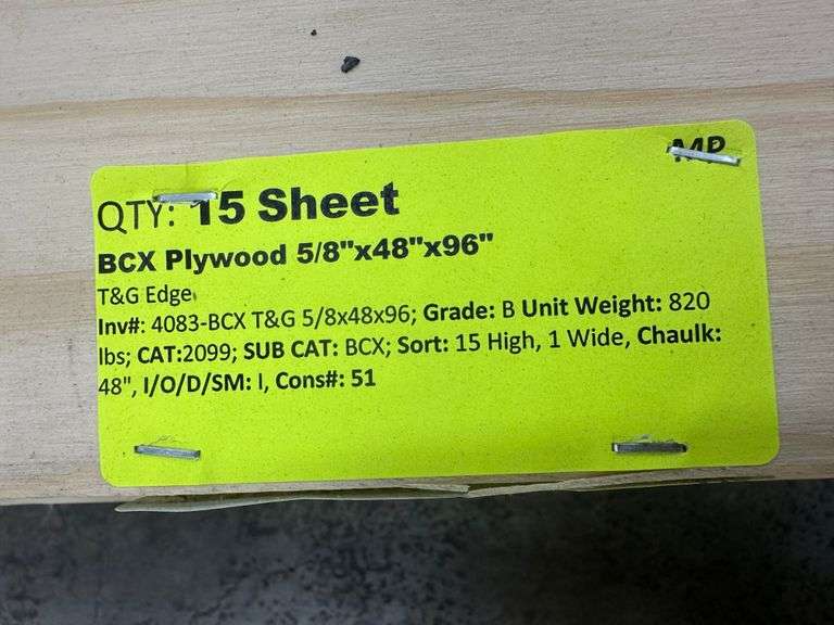 BCX Plywood 5/8"x48"x96". T&G Edge, Grade: B Weight: 820. Sold by: Sheet. Sold as: Price x Quantity.