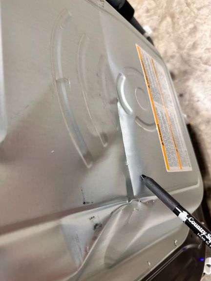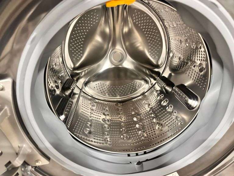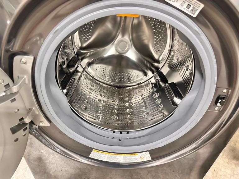 LG 5.0 cu. ft. Mega Capacity Smart Front Load ENERGY STAR Washer. Dent by the control and missing spot where soap goes. Dent in the back panel. 27" x 39" x 33 1/8". Color: Dark grey. With TurboWash® 360° Technology, power clean big loads in under 30 minutes Weight: . Sold by: . Sold as: Price x Quantity.