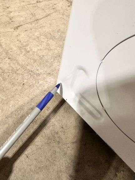 LG 7.4 cu. ft. Vented Stackable SMART Gas Dryer in White. Small dents to bottom right side, minor scratch to top right side, several dents to back panel, small dent to bottom left side, minor scratches on the top. 39" x 27" x 29.75". Digital dial control with LCD Display Our intuitive dial control. Built-in sensors use AI technology to detect fabric texture and load size. Weight: . Sold by: . Sold as: Price x Quantity.