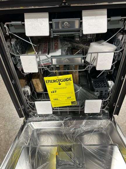 Forno FDWBI8035-24S Stainless Steel Dishwasher. This listing features a Forno FDWBI8035-24S dishwasher finished in stainless steel, offering a sleek and modern appliance option. The dishwasher appears to have minor damage, notably the top part shows broken glass or plastic, and the overall condition is graded as D magor damg to door . The control panel is located at the top edge of the door, and the appliance is labeled with specifications indicating a 120V/AC power supply, 60Hz frequency, and a total current of 10A. The brand and model are clearly identified on the unit. This dishwasher would appeal to buyers looking for a durable, stainless steel kitchen appliance, either for replacement parts or repair, considering its condition. It offers flexibility in installation and operation in homes or workshops managing appliance refurbishment. This is a liquidated product. The Auction Company makes no express or implied representations or warranties of any kind regarding the Product. Any pre-existing retail, wholesale or manufacturer warranties will not transfer with the sale of this Product unless expressly stated otherwise on this page. The Buyer accepts the Product in as-is condition, with all faults. Weight: . Sold by: Piece. Sold as: Price x Quantity.
