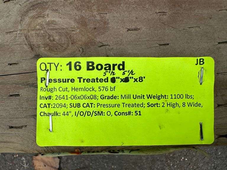 Pressure Treated 5"x5"x8'. Rough Cut, Hemlock, 576 Board Foot, Grade: Mill Weight: 1100. Sold by: Board. Sold as: Price x Quantity.