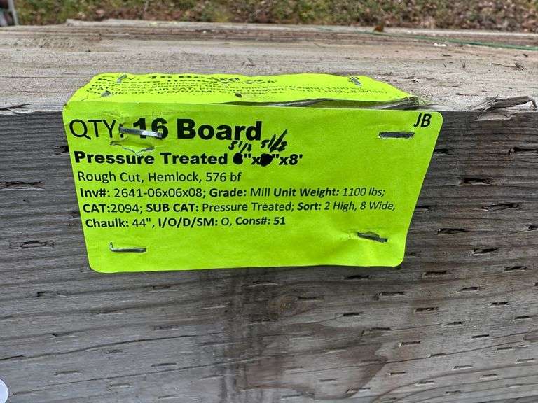 Pressure Treated 5 1/2"x5 1/2"x8'. Rough Cut, Hemlock, 576 Board Foot, Grade: Mill Weight: 1100. Sold by: Board. Sold as: Price x Quantity.