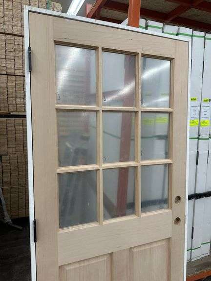 Doug Fir Exterior 9 Lite Door 36"x 80" RH. Unfinished, Single Pane Glass, Prehung, Grade: 1st Quality Weight: x. Sold by: Door. Sold as: Price x Quantity.