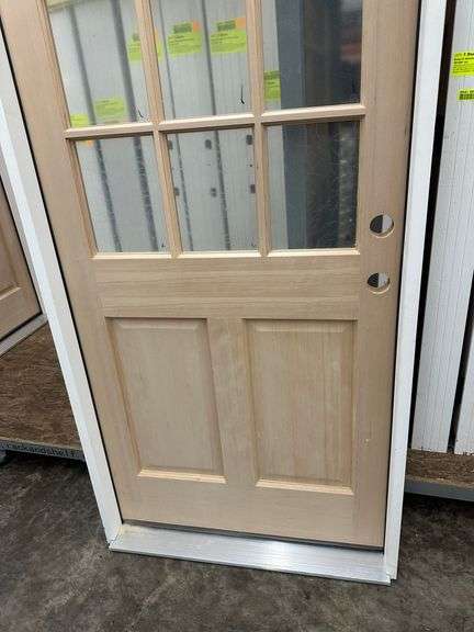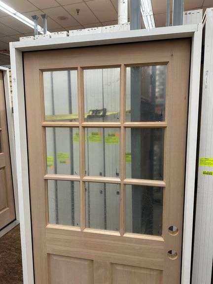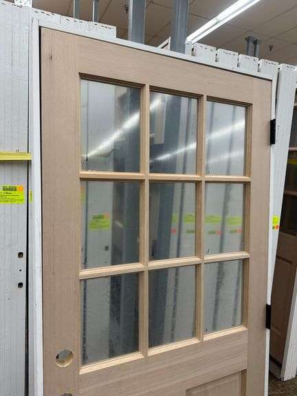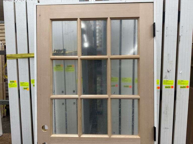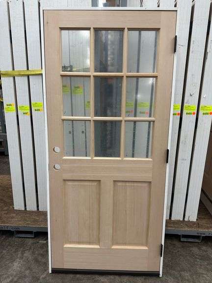 Doug Fir Exterior 9 Lite Door 36"x 80" LH. Unfinished, Single Pane Glass, Prehung, Grade: 1st Quality Weight: x. Sold by: Door. Sold as: Price x Quantity.