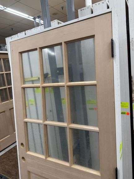 Doug Fir Exterior 9 Lite Door 36"x 80" LH. Unfinished, Single Pane Glass, Prehung, Grade: 1st Quality Weight: x. Sold by: Door. Sold as: Price x Quantity.