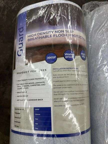 Floor Guard. By Home Design, High Density Floor Protector, Suitable For Wood, Laminate, Vinyl, Ceramic, Carpeting And Countertops, Breathable, Waterproof, Anti Slip W/ Adhesive Back, 300 Square Foot Per Roll, 1.5mm Thickness, Grade: 1st Quality Weight: x. Sold by: Roll. Sold as: Price x Quantity.