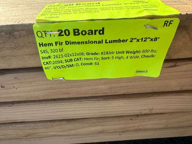 Hem Fir Dimensional Lumber 2"x12"x8'. S4S, 320 Board Foot, Grade: #2&btr, *Condition Note: Splits/Cracks, Please See Photos* Weight: 600. Sold by: Board. Sold as: Price x Quantity.