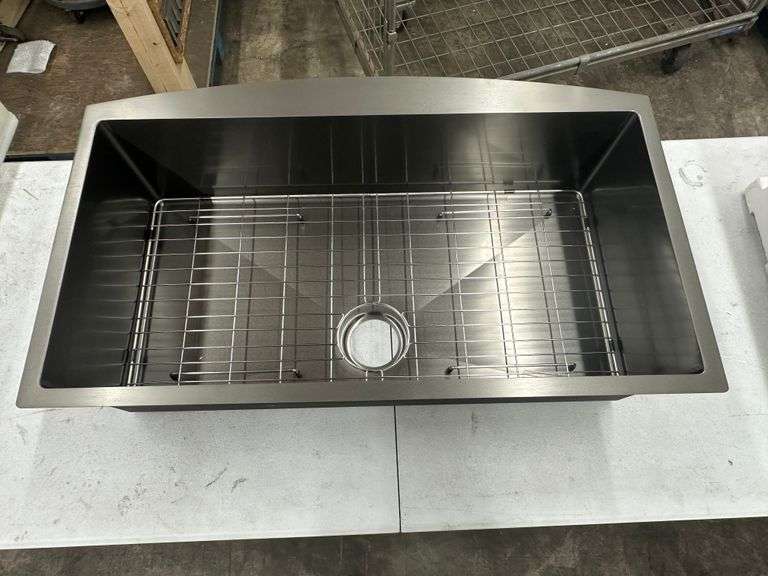 36" Farmhouse Sink 16 Guage Stainless Steel Single Bowl Gunmetal Black. By Glacier Bay, Nano PVD Tech, Scratch Resistant, Water-Repellant Coating, Kit Includes Sink, Faucet, Strainer, and Bottom Grid. Actual Dimensions: 36"x21"x10" Depth Weight: x. Sold by: Piece. Sold as: Price x Quantity.