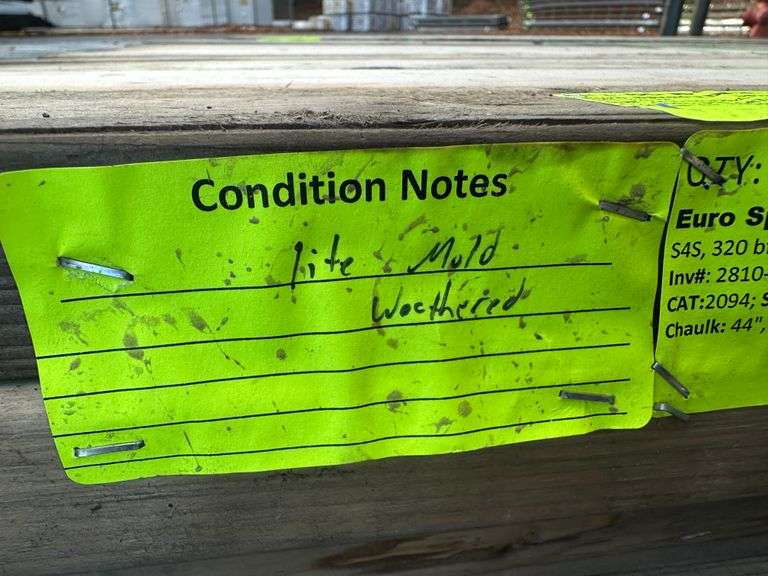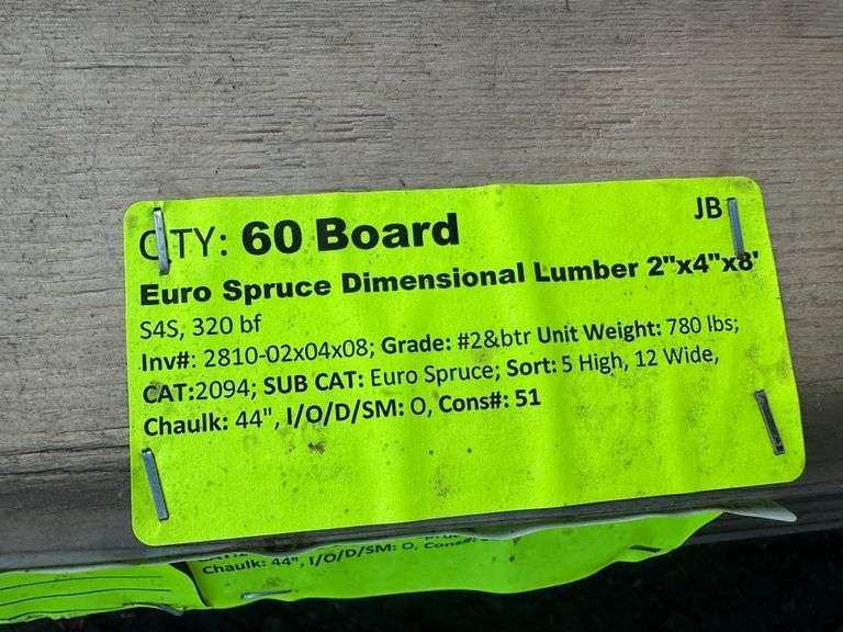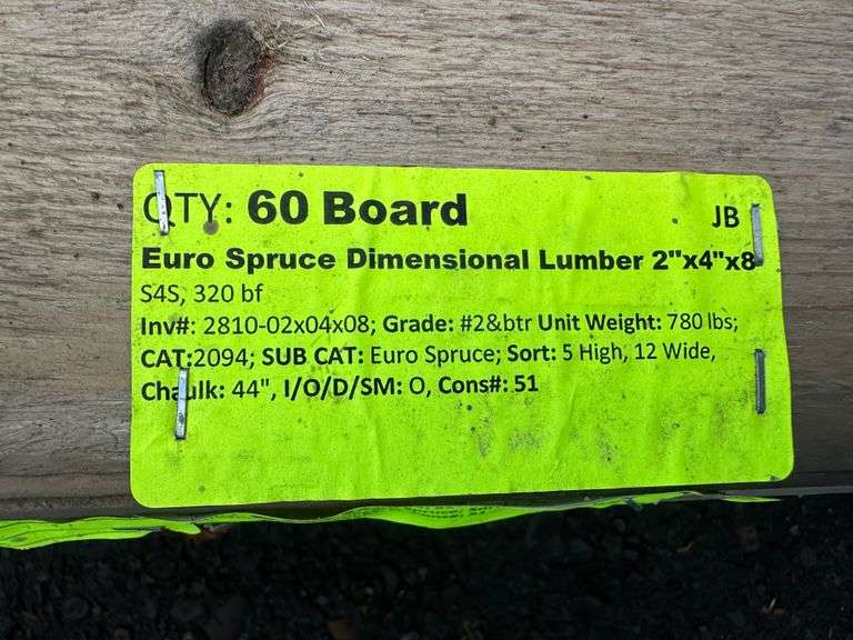 Euro Spruce Dimensional Lumber 2"x4"x8'. S4S, 320 Board Foot, Grade: #2&btr, *Condition Note: Lite Mold, Weathered, Please See Photos* Weight: 780. Sold by: Board. Sold as: Price x Quantity.