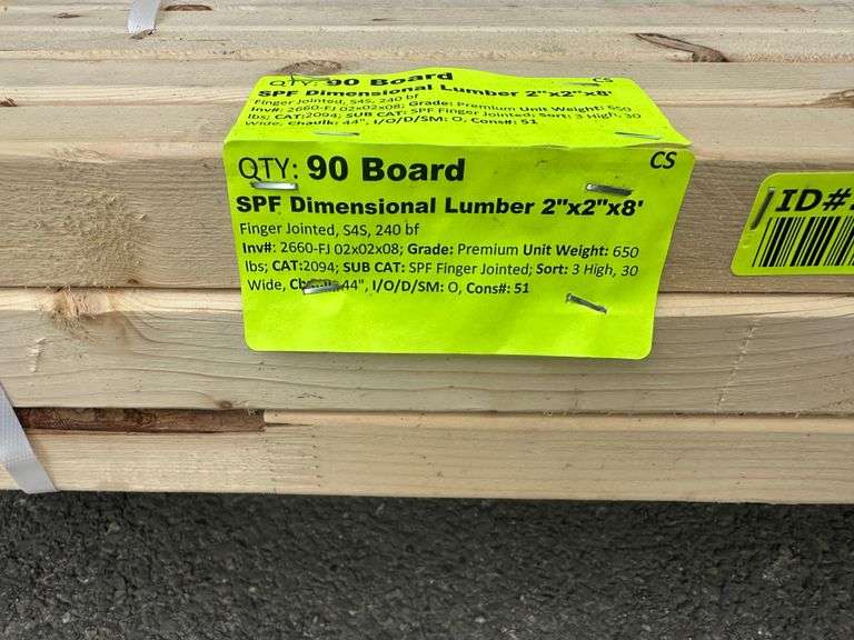 SPF Dimensional Lumber 2"x2"x8'. Finger Jointed, S4S, 240 bf Grade: Premium Weight: 650. Sold by: Board. Sold as: Price x Quantity.
