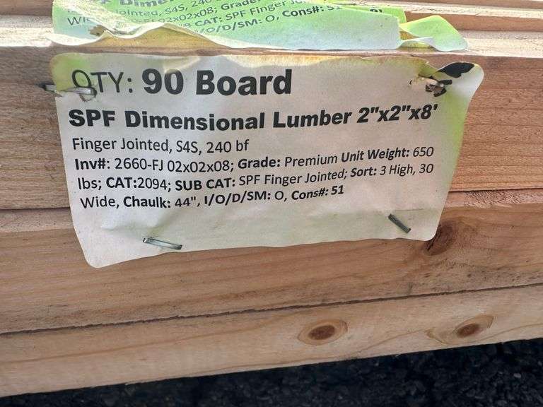 SPF Dimensional Lumber 2"x2"x8'. Finger Jointed, S4S, 240 Board Foot, Grade: Premium Weight: 650. Sold by: Board. Sold as: Price x Quantity.