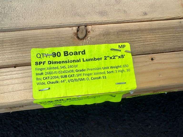 SPF Dimensional Lumber 2"x2"x8'. Finger Jointed, S4S, 240 Board Foot, Grade: Premium Weight: 650. Sold by: Board. Sold as: Price x Quantity.
