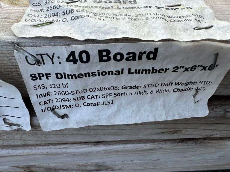 SPF Dimensional Lumber 2"x6"x8'. S4S, 320 Board Foot, Grade: STUD *Splits/Cracks, Mold, Weathered, See Photos* Weight: 910. Sold by: Board. Sold as: Price x Quantity.