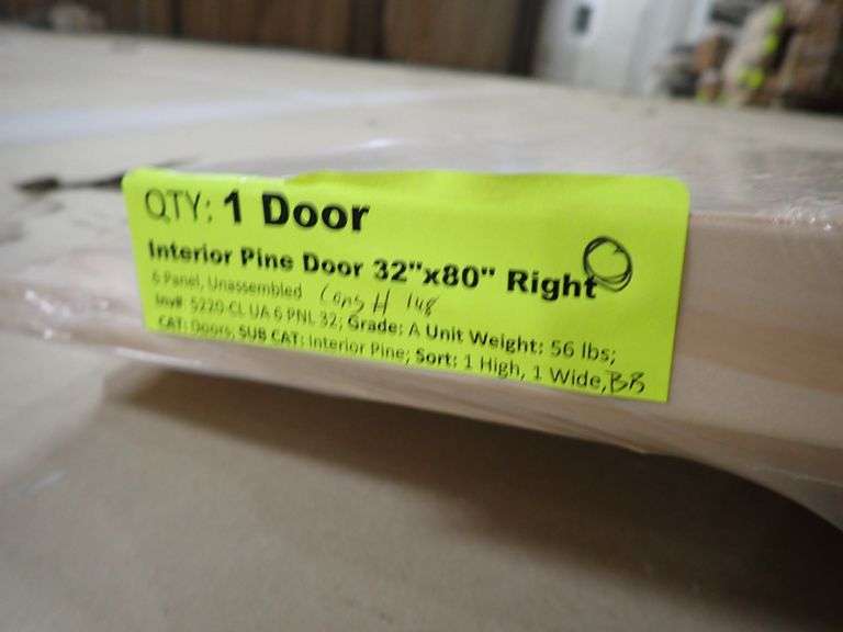 Interior Clear Pine Door 32"x80" 6 PNL RH(Unassembled). 6 Panel, Right Hand, Grade: A Weight: x. Sold by: Door. Sold as: Price x Quantity.