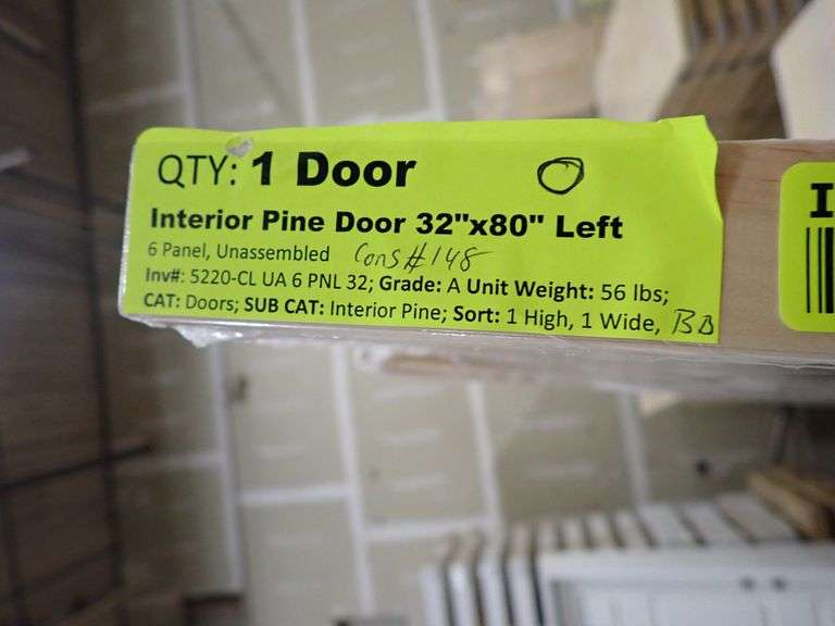 Interior Clear Pine Door 32"x80" 6 PNL LH (Unassembled). 6 Panel, Left Hand, Grade: A Weight: x. Sold by: Door. Sold as: Price x Quantity.