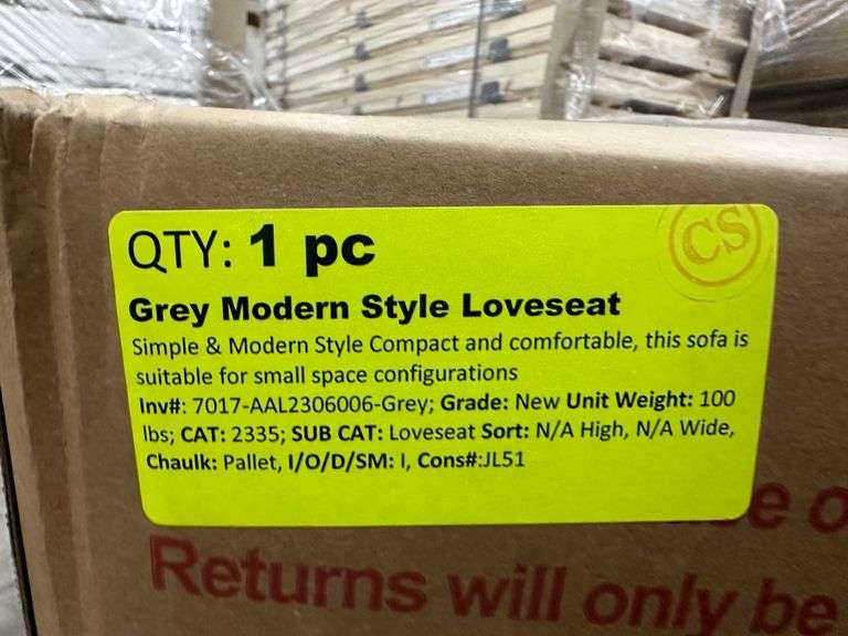 Grey Modern Style Loveseat. Simple and Modern Style, Compact and Comfortable, This Sofa is Suitable for Small Space Configurations, Grade: New Weight: 100. Sold by: Piece. Sold as: Price x Quantity.