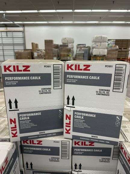 10.1 oz Interior/Exterior Performance Caulk. By Kilz, White no crack or shiners, paintable in 30 minutes. 2 cases, 12 tubes per case. Grade: A Weight: 56. Sold by: Tube. Sold as: Price x Quantity.