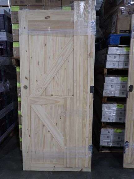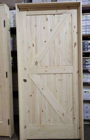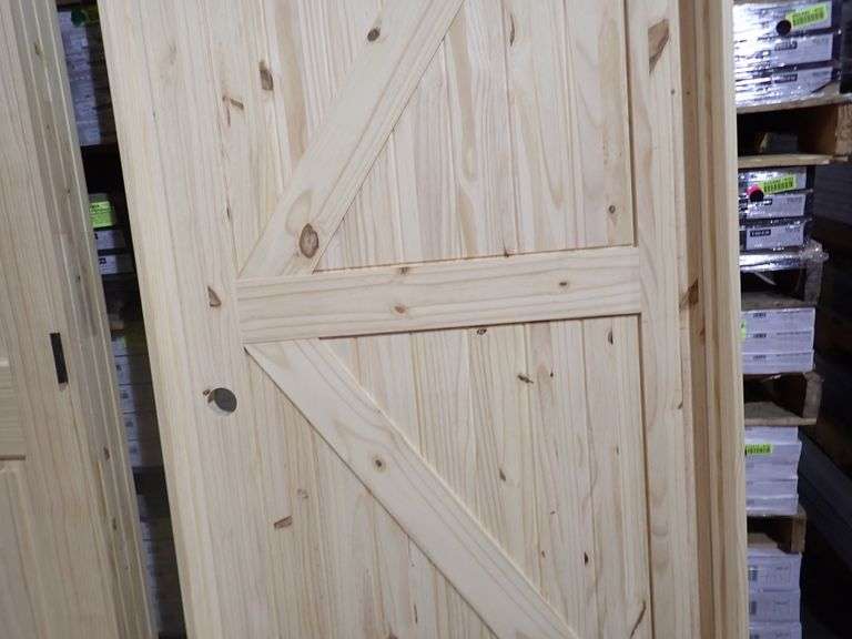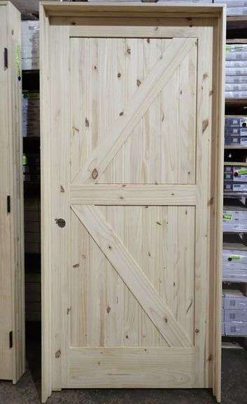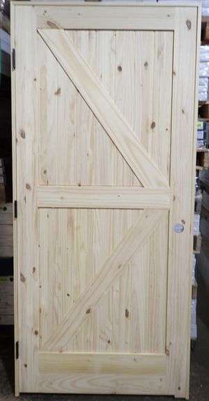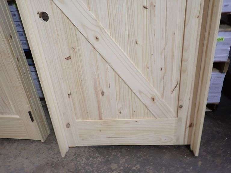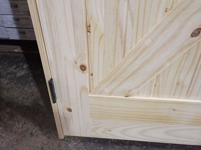 Interior Knotty Pine Door 36"x80" RH K PNL (Unassembled). K Panel, Right Hand, Grade: A *Condition Note: Fork Damage, Please See Photos.* Weight: x. Sold by: Door. Sold as: Price x Quantity.