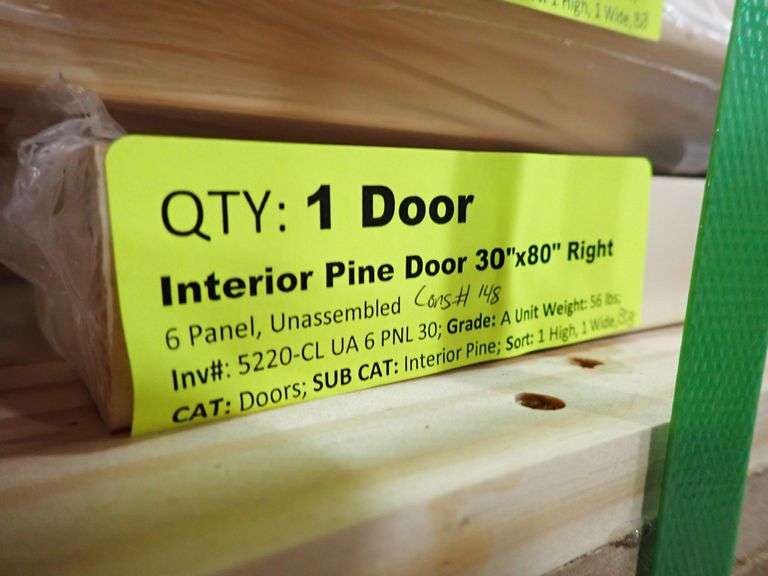 Unassembled Interior 6 Panel Clear Pine Door 30"x80" RH. Grade: A Weight: x. Sold by: Door. Sold as: Price x Quantity.
