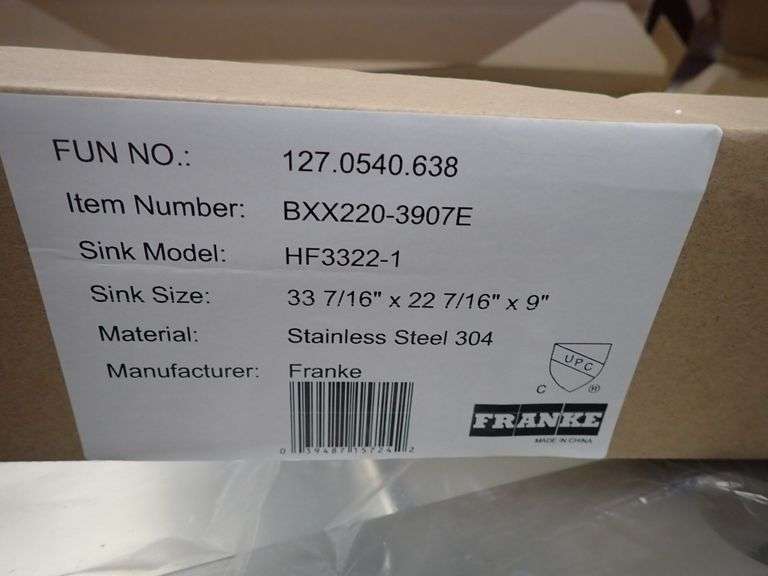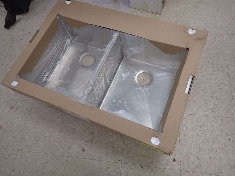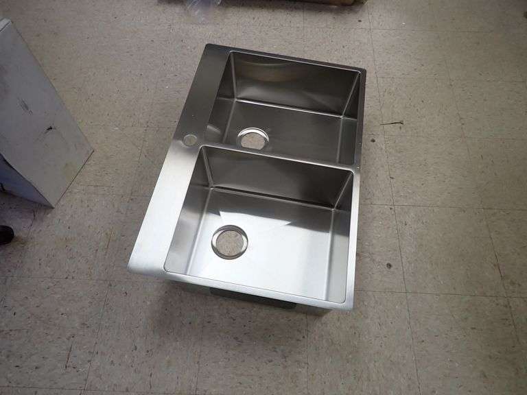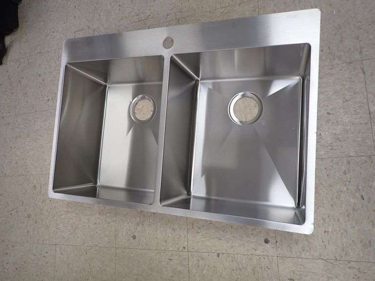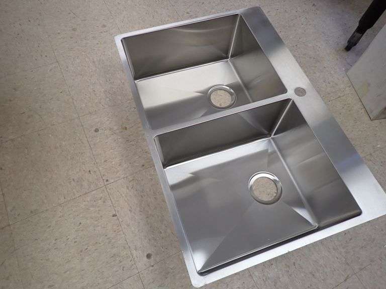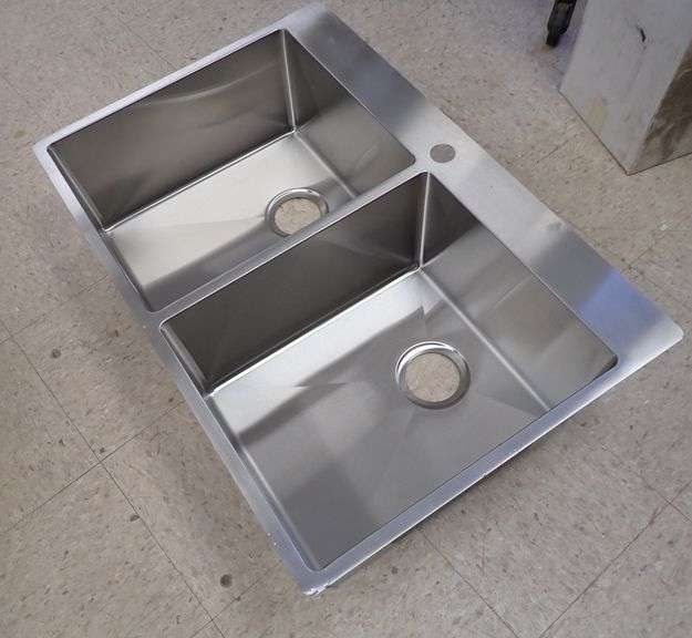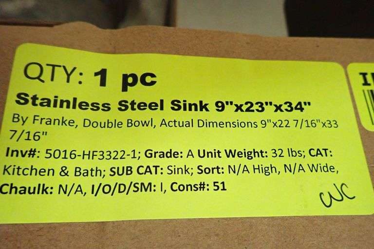 Stainless Steel Sink 9"x23"x34". By: Franke, Double Bowl, Actual Dimensions: 9"x22 7/16"x33 7/16", Grade: A Weight: 32. Sold by: Piece. Sold as: Price x Quantity.
