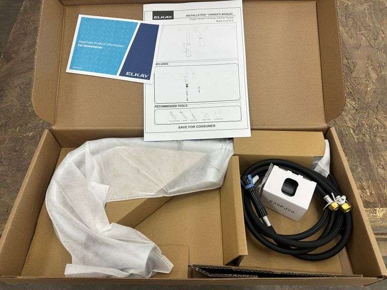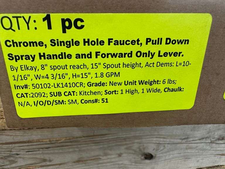 Chrome Single Hole Faucet, Pull Down Spray Handle And Forward Only Lever. By Elkay, 8" Spout Reach, 15" Spout Height, Actual Dimensions L=10 1/16", W=4 3/16", H=15", 1.8 GPM, Grade: New Weight: 6. Sold by: Piece. Sold as: Price x Quantity.