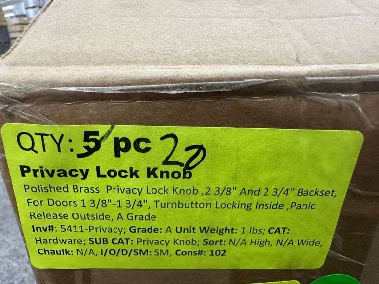 Privacy Lock Knob. Antique Brass Privacy Lock Knob, 2 3/8" And 2 3/4" Backset, For Doors 1 3/8"- 1 3/4", Turnbutton Locking Inside, Panic Release Outside, Grade: A Weight: x. Sold by: Piece. Sold as: Price x Quantity.