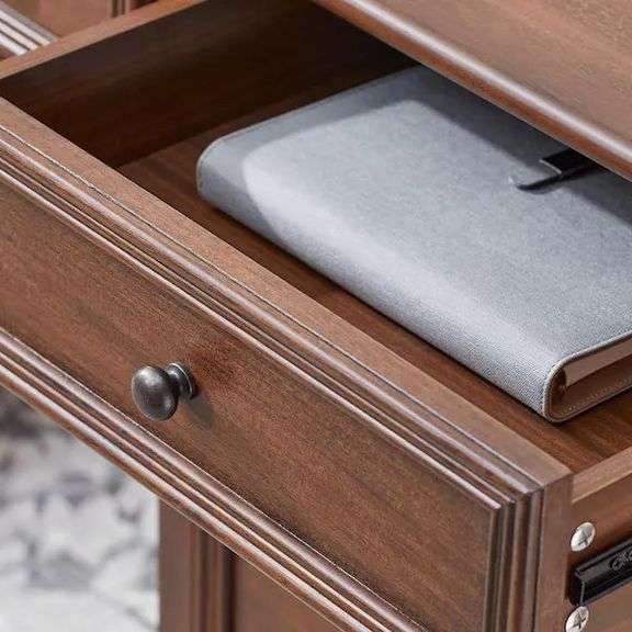 Bradstone 63" Walnut Brown Wood Executive Desk. Dimensions 30.91"x63"x23", Antique Bronze Hardware, 4 Drawers, 1 Cabinet Weight: 153. Sold by: Piece. Sold as: Price x Quantity.