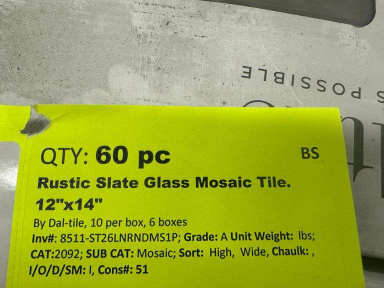 Rustic Slate Glass Mosaic Tile 12"x14". By Dal-Tile, 10 per box, 6 Boxes, Grade: A. Weight: X. Sold by: Piece. Sold as: Price x Quantity.
