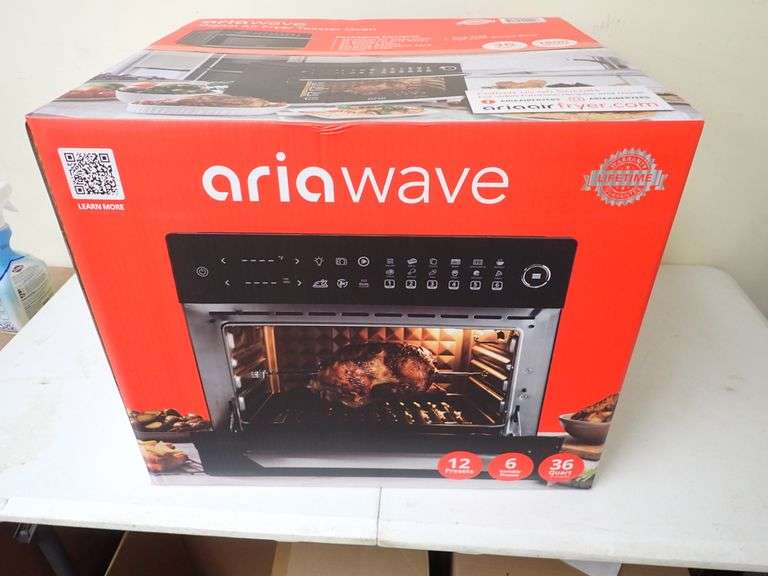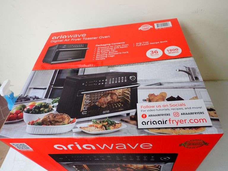 Black Ariawave 36 Quart Digital Air Fryer Toaster Oven. 1800 Watts, Comes With 2 Grill Racks, 2 Enamel Pans, Fryer Basket, Rotating Rotisserie Attachments, Drip Tray, And Recipe Book, Grade: A Weight: 34. Sold by: Piece. Sold as: Price x Quantity.