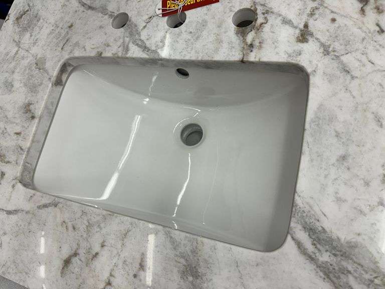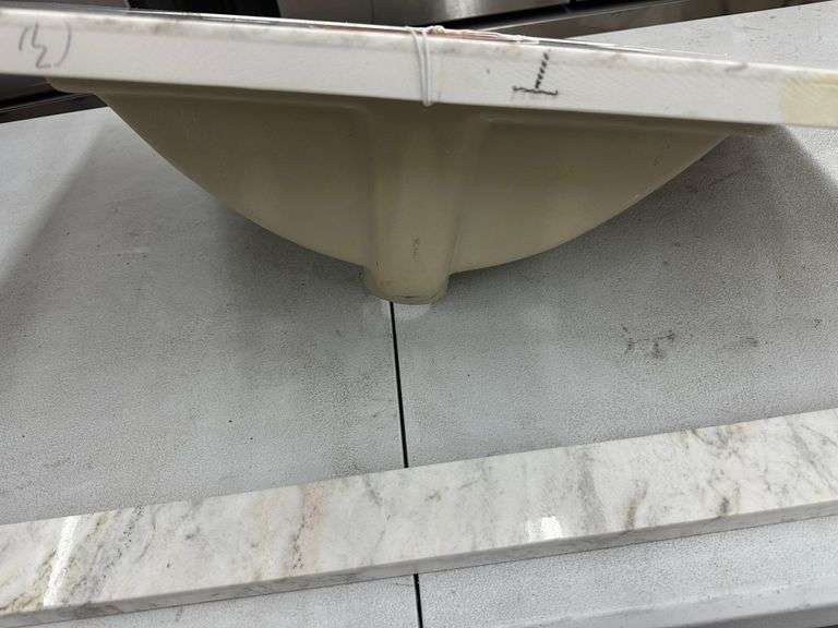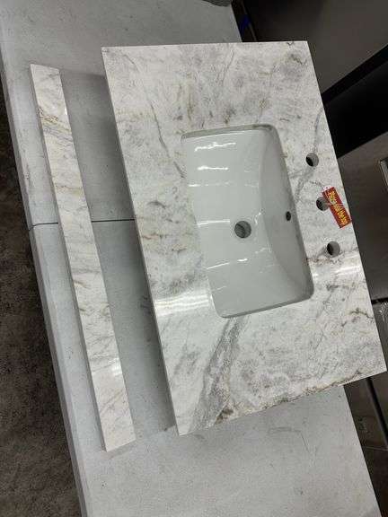 Granite Vanity Top 31"x19" with Undermount Sink. Colors May Slightly Vary, They are white and grey with a hint of tan speckle. Vanity Top Constructed Of Granite; Providing A Sturdy Feel And Clean Appearance, Has A Backsplash To Help Contain Any Messes, 8" Faucet Spread, DOES NOT Come With Faucet And Waste Assembly, Grade: A Weight: x. Sold by: Piece. Sold as: Price x Quantity.
