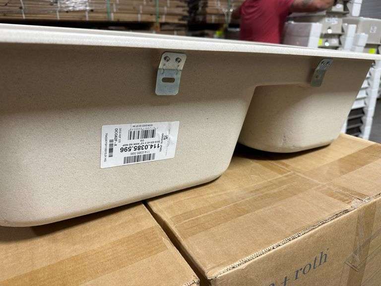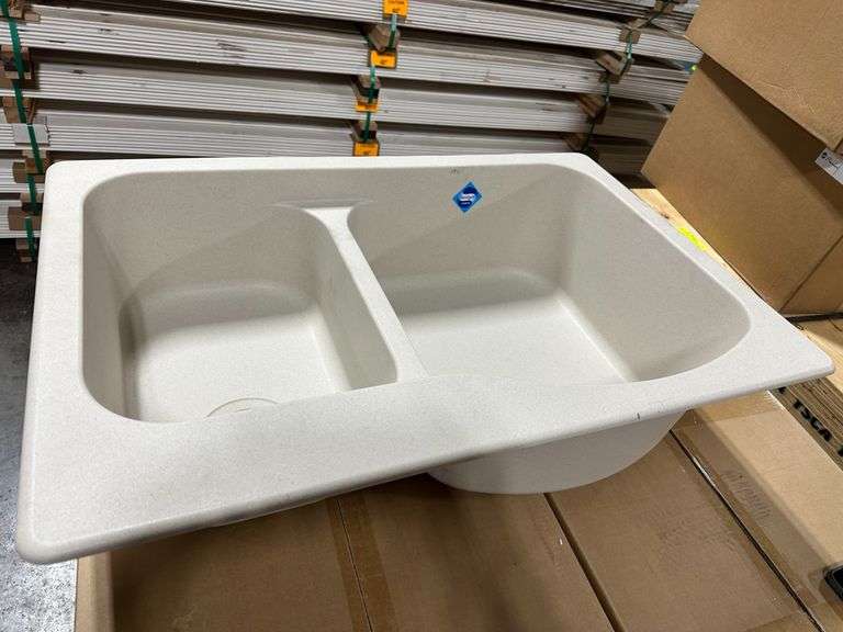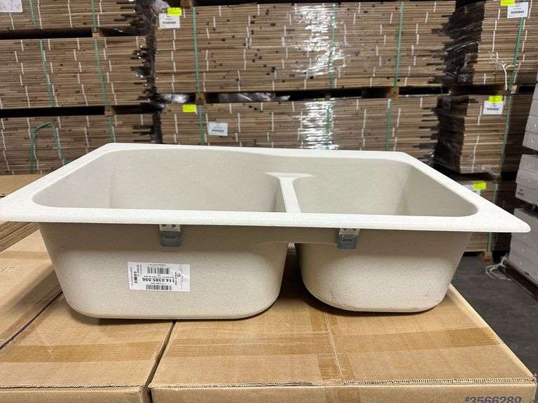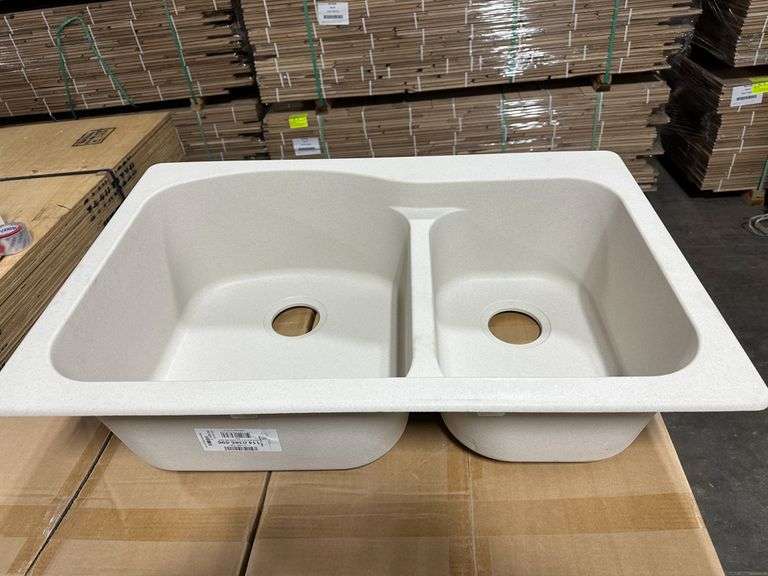 Granite Champagne Double Offset Sink 33"x22". By Franke, Rough Opening Dimensions 18 3/4"x17 1/4"x8 3/4" and 16 1/2"x 11 1/4"x7 3/4", Grade: NEW Weight: 35. Sold by: Piece. Sold as: Price x Quantity.