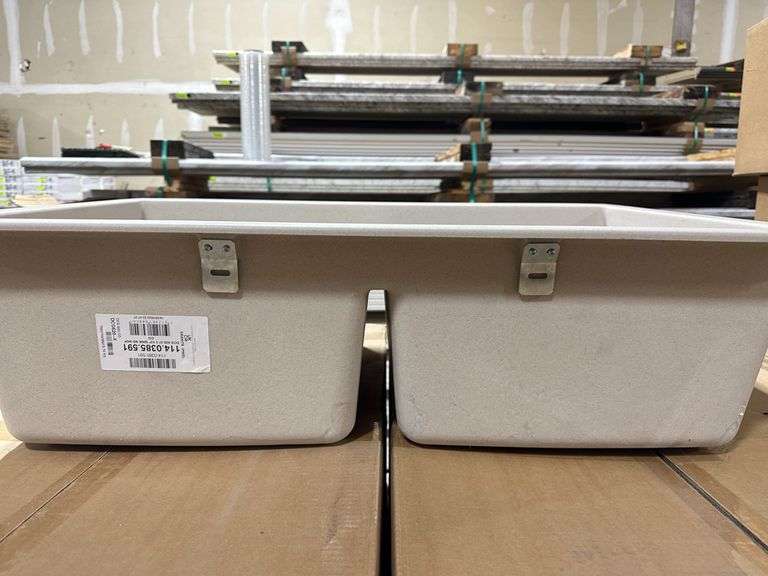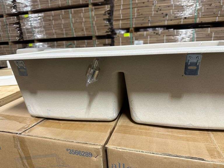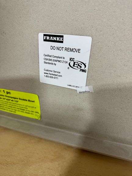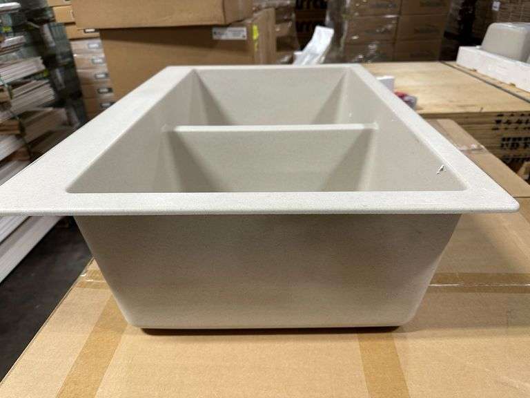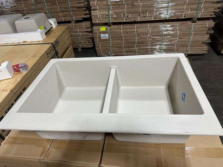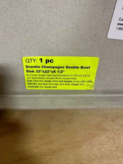Granite Champagne Double Bowl Sink 33"x22"x8 1/2". By Franke, Rough opening Dimensions 17 1/8"x14 3/8"x8 1/2" Both Bowls, Includes Bit for Faucet Holes Grade: New Weight: 35. Sold by: Piece. Sold as: Price x Quantity.