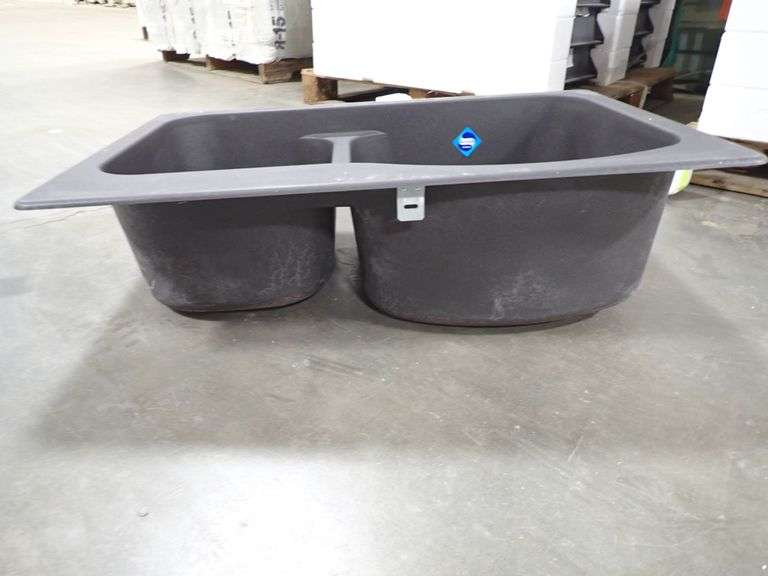 Graphite Granite Double Bowl Offset Drop-In Sink 22"x33". By: Franke, Rough Opening Dimensions: 20 1/4"x31 1/2", Bowl Dimensions: 18 1/2"x16 5/8", And 16 3/8"x11 3/8"x7 1/2", Comes With Bit For Faucet Holes, Grade: NEW Weight: 35. Sold by: Piece. Sold as: Price x Quantity.