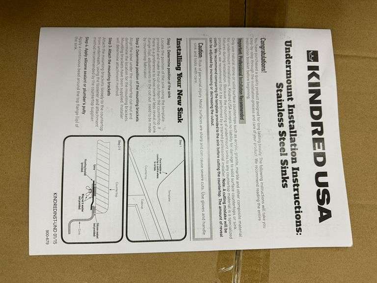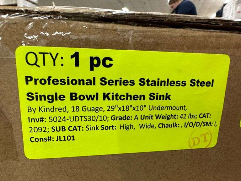 Professional Series Stainless Steel Single Bowl Kitchen Sink. By: Kindred, 18 Gauge, 29"x18"x10" Undermount, Grade: A Weight: 42. Sold by: Piece. Sold as: Price x Quantity.