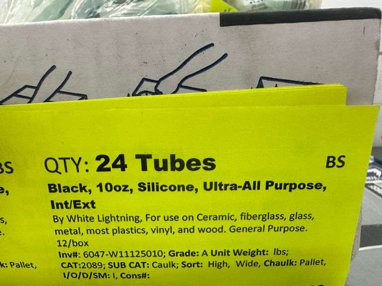 Black 10oz Silicone Ultra-All Purpose Interior/Exterior. By White Lighting, For Use On Ceramic, Fiberglass, Glass, Metal, Most Plastics, Vinyl, and Wood. General Purpose. 12/Box Grade: A Weight: X. Sold by: Tube. Sold as: Price x Quantity.