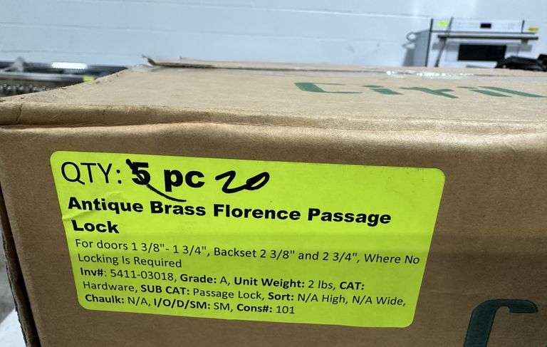 Antique Brass Florence Passage Lock. For Doors 1 3/8" - 1 3/4", Backset 2 3/8" and 2 3/4", No Locking Required Grade A Weight: 30. Sold by: Piece. Sold as: Price x Quantity.