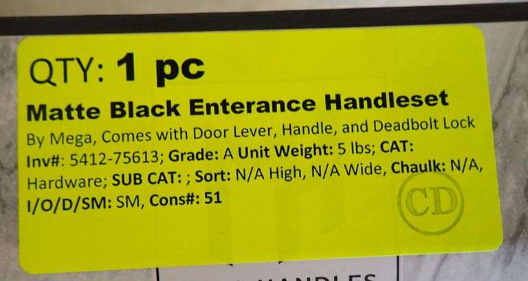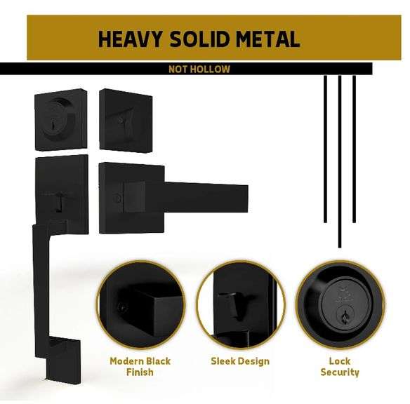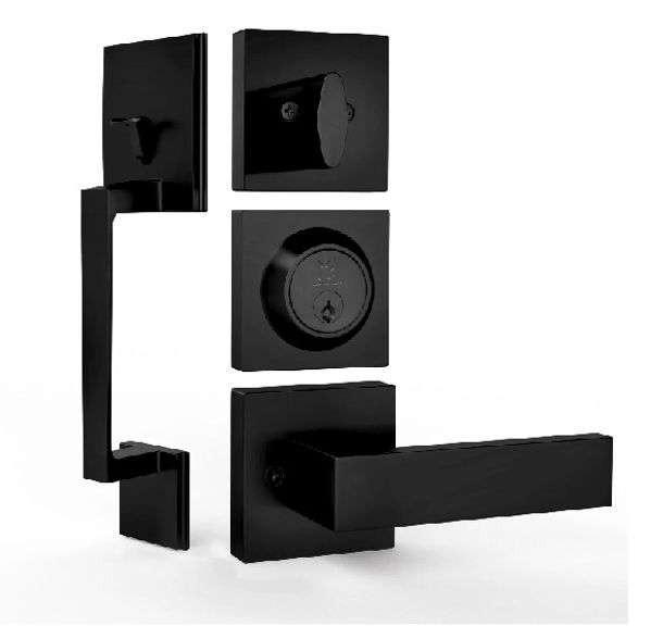 Matte Black Entrance Handleset. By Mega, comes With Door Lever, Handle, and Deadbolt Lock Weight: 5. Sold by: Piece. Sold as: Price x Quantity.